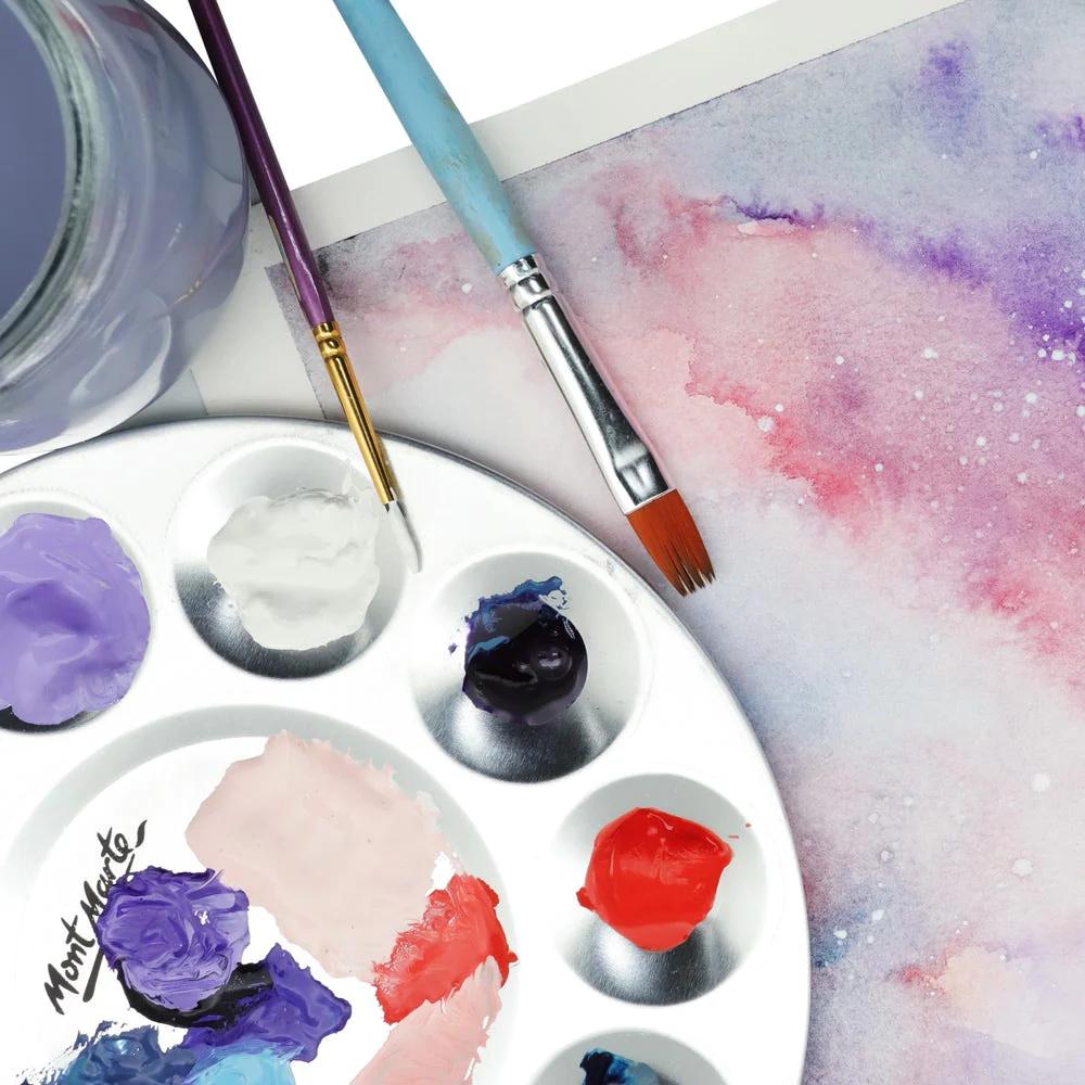 هذه لوحة ألوان دائرية مصنوعة من الألومنيوم من مونت مارت، تتميز بتصميمها البسيط والعملي. تحتوي على 10 تجاويف لمزج الألوان، مما يوفر مساحة كافية للتحكم في درجات الألوان والحصول على النتائج المرجوة. سهلة التنظيف ومقاومة للصدأ، مثالية للفنانين المحترفين والهواة على حد سواء.