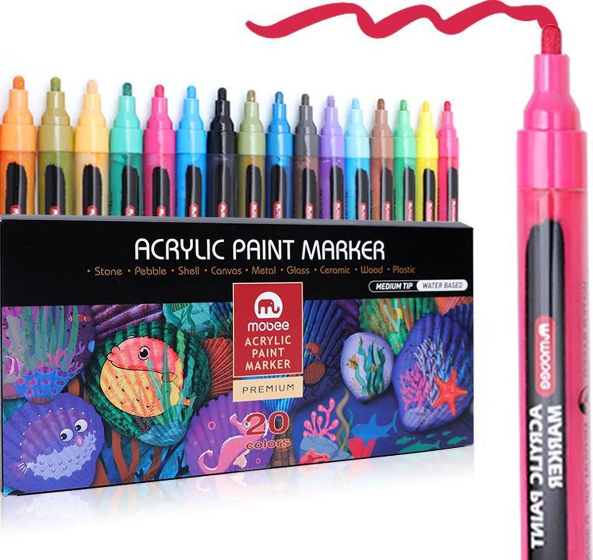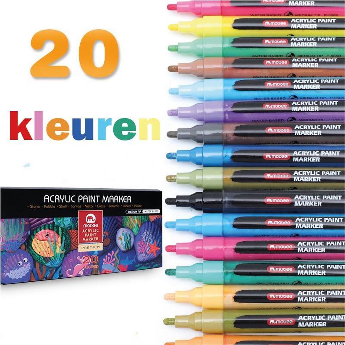 **أضف لمسة إبداعية مبهجة مع مجموعة أقلام الطلاء الأكريليكي من موبي - 20 لونًا!**