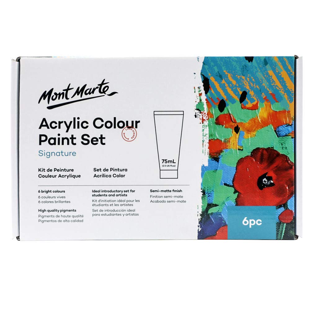 - 6 × أنابيب ألوان أكريليك (75 مل لكل لون)