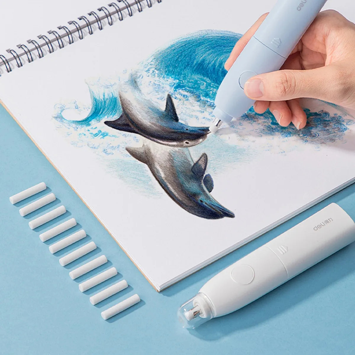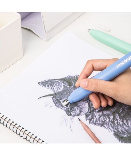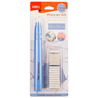 ممحاة كهربائية من مجموعة ماكارون بلون أزرق مطفي جذاب من ديلي، تأتي مع مجموعة من الرؤوس الاحتياطية لتوفر لك سهولة الاستخدام والدقة في التنظيف. تم تصميمها لتجمع بين الأناقة والفعالية، وتأتي في عبوة جذابة تبرز لونها الجميل ووظائفها العملية. مثالية للطلاب، الفنانين، والمحترفين الذين يبحثون عن دقة عالية في عملهم.